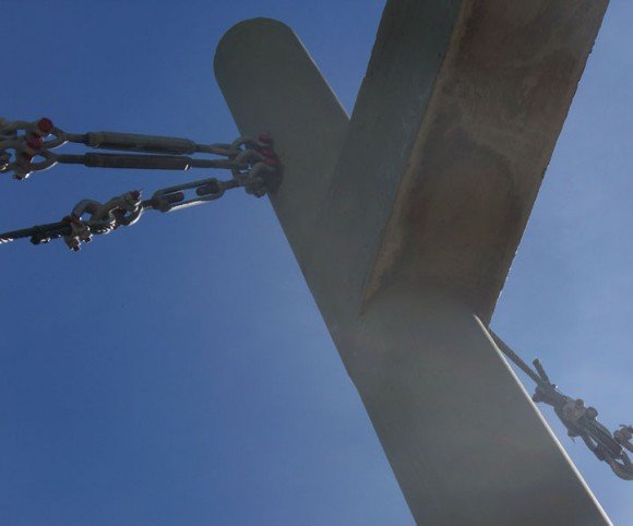 – Ejecución de cabezales, en ambos extremos del puente pasarela, con pilotes hormigonados in situ. Posterior colocación de tensores.